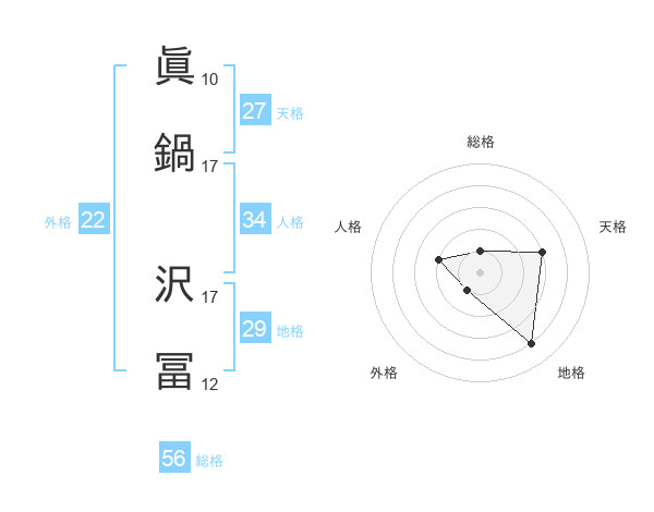 眞鍋 沢冨さんを姓名の画数から五運を鑑定
