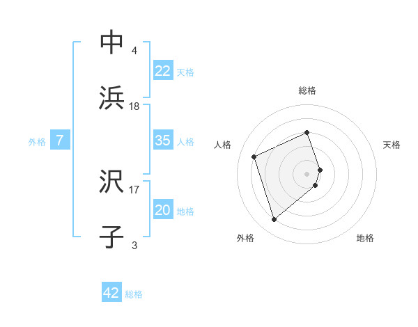 中浜 沢子さんの総格は42画の3点!