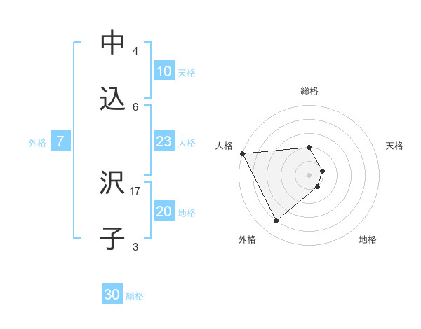 中込 沢子さんの総格は30画の2点!