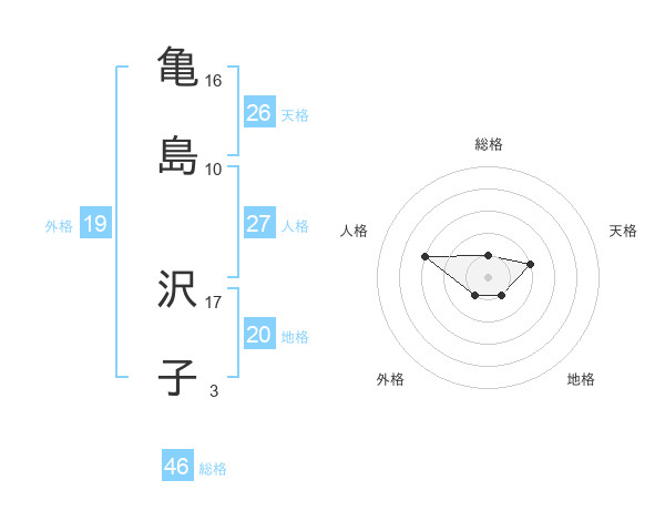 亀島 沢子さんを姓名の画数から五運を鑑定