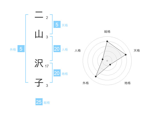 二山 沢子さんの総格は25画の4点!