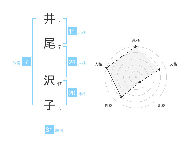 井尾 沢子さんの総格は31画の5点!