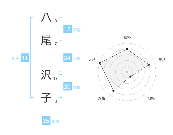 八尾 沢子さんの総格は35画の4点!
