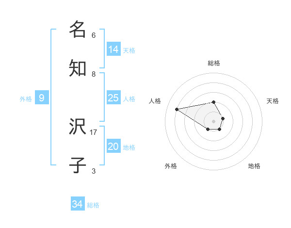 名知 沢子さんの地格は20画の1点!