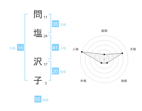 問塩 沢子さんを姓名の画数から五運を鑑定