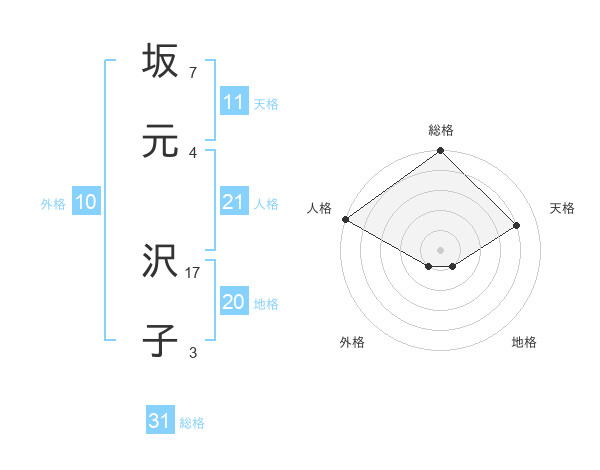 坂元 沢子さんの人格は21画の5点!