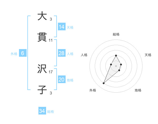 大貫 沢子さんの総格は34画の2点!