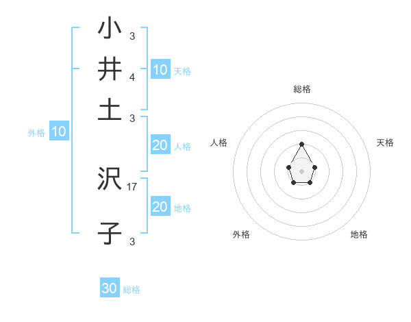 小井土 沢子さんを姓名の画数から五運を鑑定