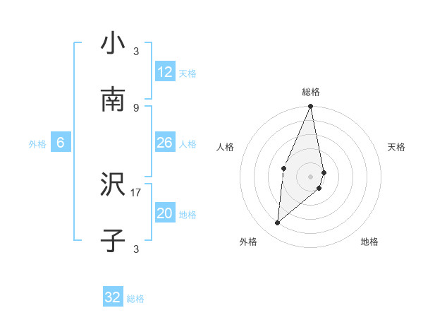 小南 沢子さんの総格は32画の5点!