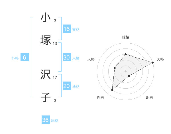 小塚 沢子さんを姓名の画数から五運を鑑定