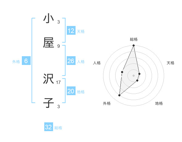 小屋 沢子さんを姓名の画数から五運を鑑定