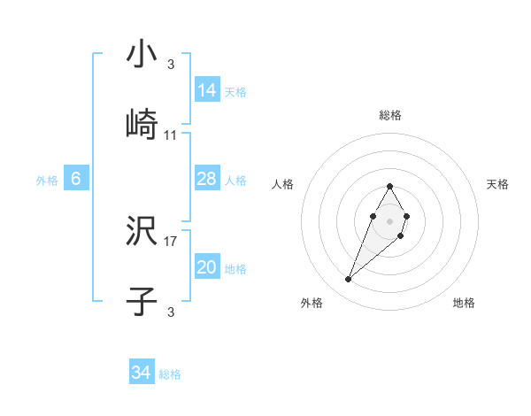 小崎 沢子さんを姓名の画数から五運を鑑定