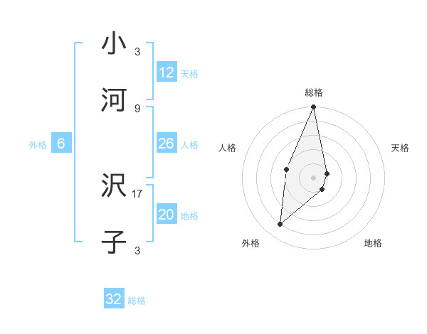 小河 沢子さんの総格は32画の5点!