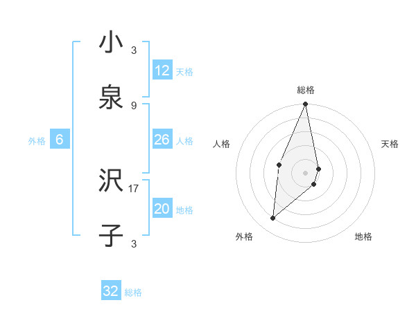 小泉 沢子さんを姓名の画数から五運を鑑定