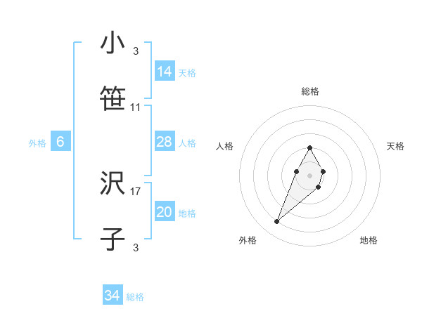小笹 沢子さんを姓名の画数から五運を鑑定