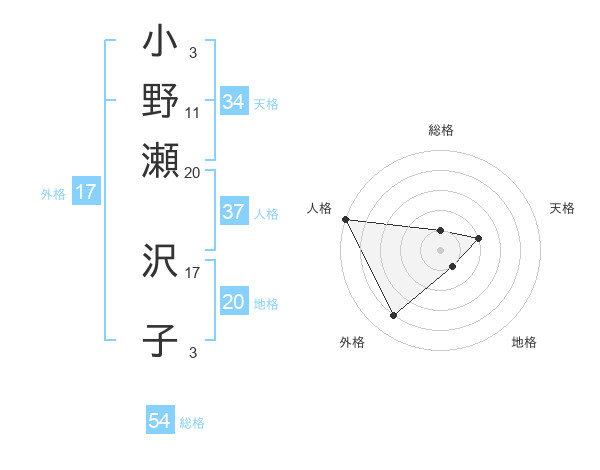 小野瀬 沢子さんの外格は17画の4点!