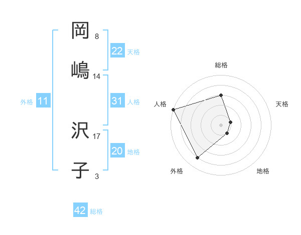 岡嶋 沢子さんを姓名の画数から五運を鑑定