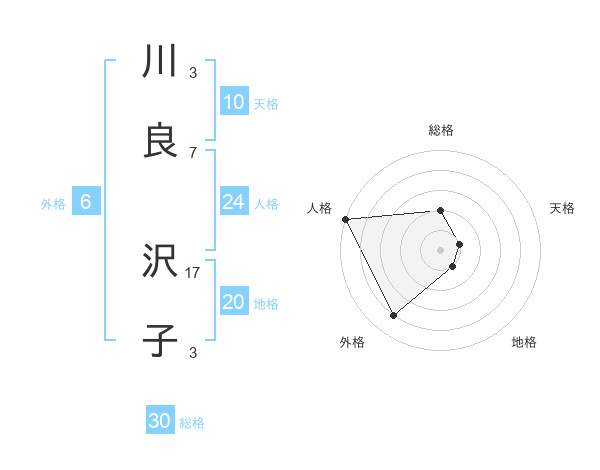 川良 沢子さんの総格は30画の2点!