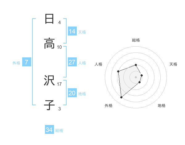 日高 沢子さんの総格は34画の2点!