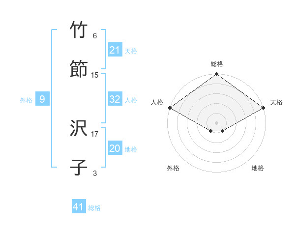 竹節 沢子さんを姓名の画数から五運を鑑定