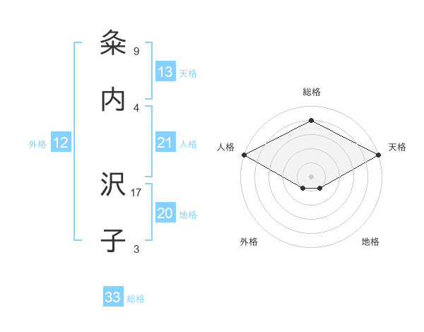 粂内 沢子さんを姓名の画数から五運を鑑定