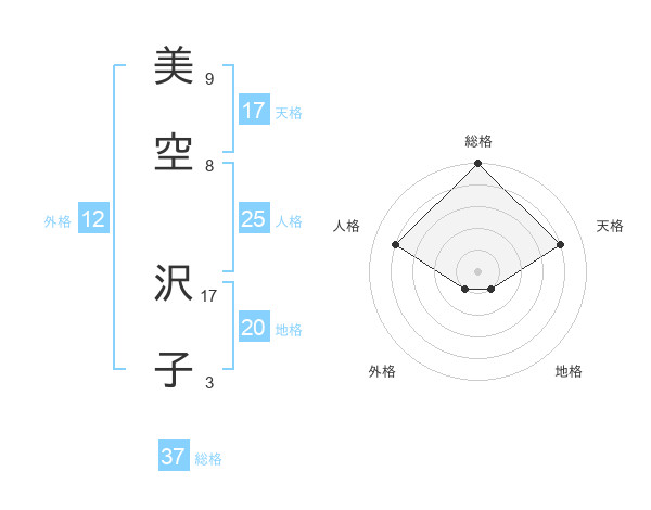 美空 沢子さんの総格は37画の5点!