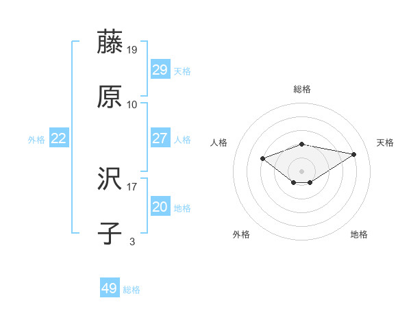 藤原 沢子さんを姓名の画数から五運を鑑定