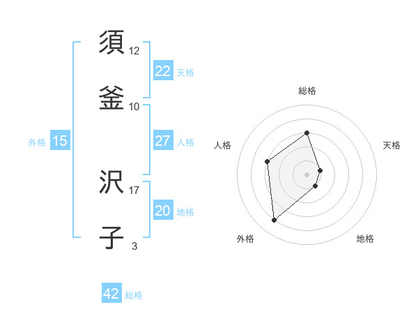 須釜 沢子さんを姓名の画数から五運を鑑定