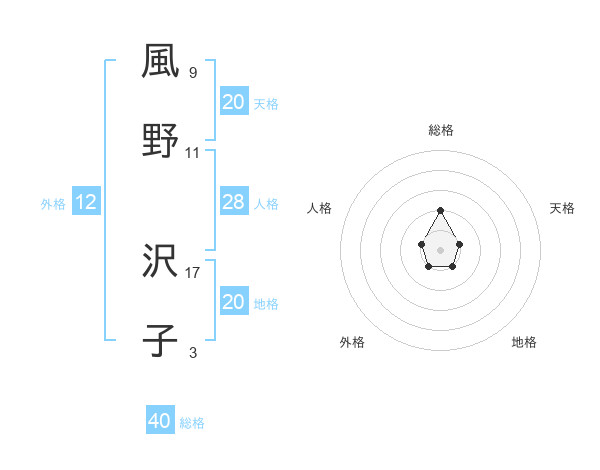 風野 沢子さんの天格は20画の1点!