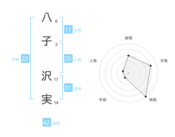 八子 沢実さんの外格は22画の1点!