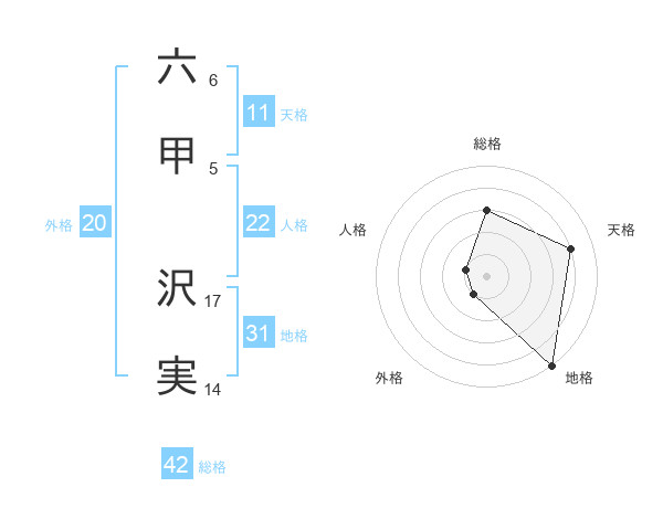 六甲 沢実さんを姓名の画数から五運を鑑定