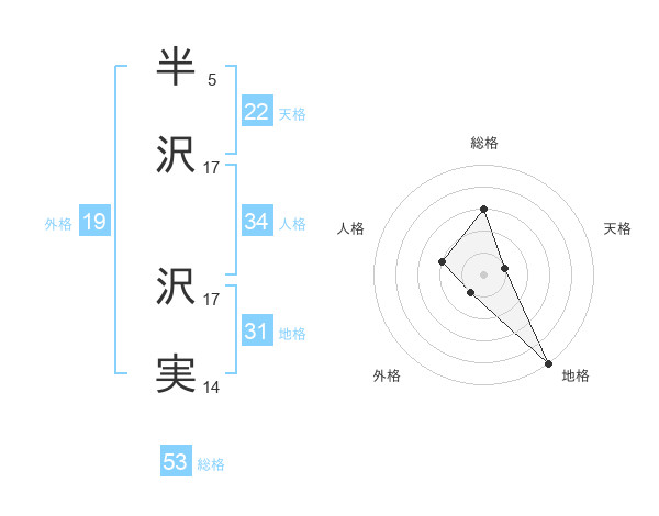半沢 沢実さんの総格は53画の3点!