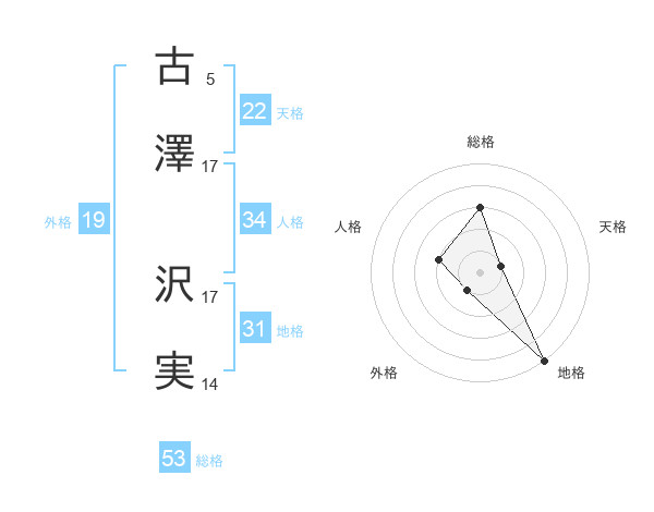 古澤 沢実さんの総格は53画の3点!