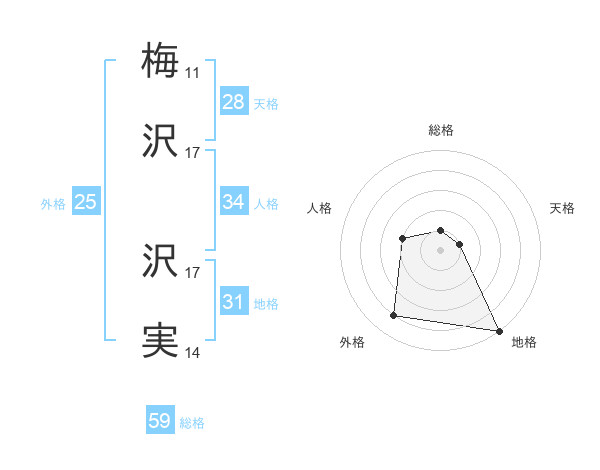 梅沢 沢実さんの外格は25画の4点!