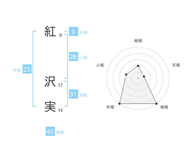 紅 沢実さんの外格は23画の5点!