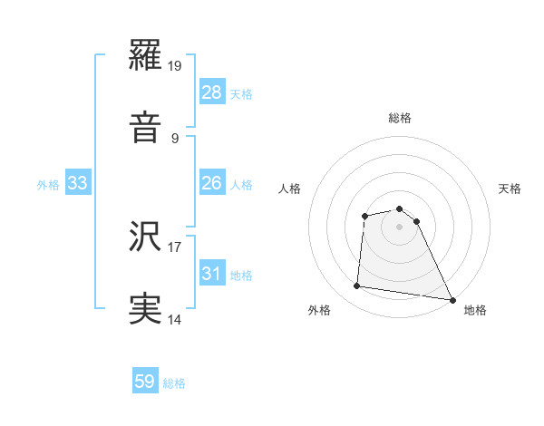 羅音 沢実さんを姓名の画数から五運を鑑定