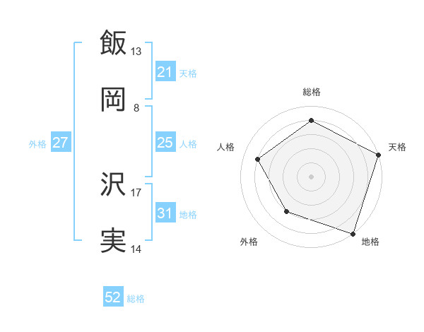 飯岡 沢実さんを姓名の画数から五運を鑑定