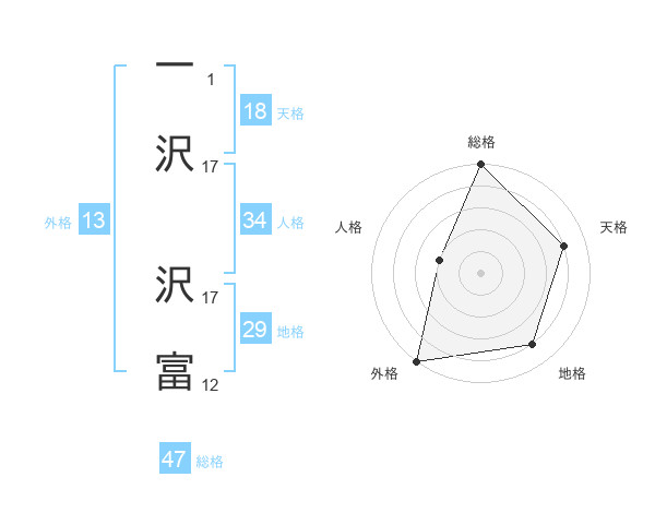一沢 沢富さんを姓名の画数から五運を鑑定