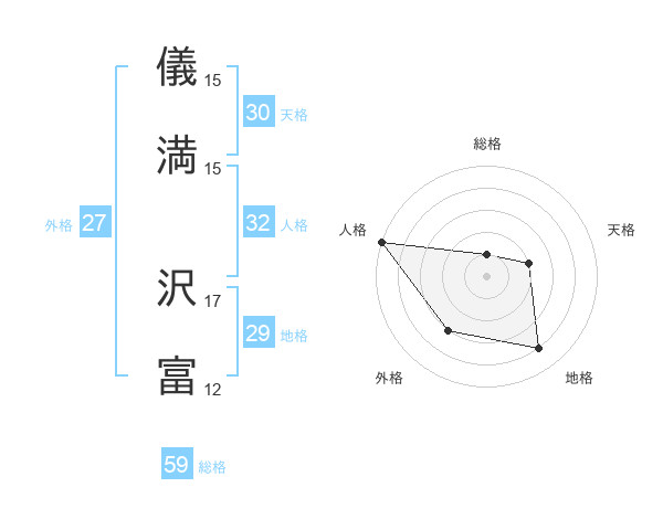 儀満 沢富さんの総格は59画の1点!
