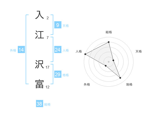 入江 沢富さんの総格は38画の4点!