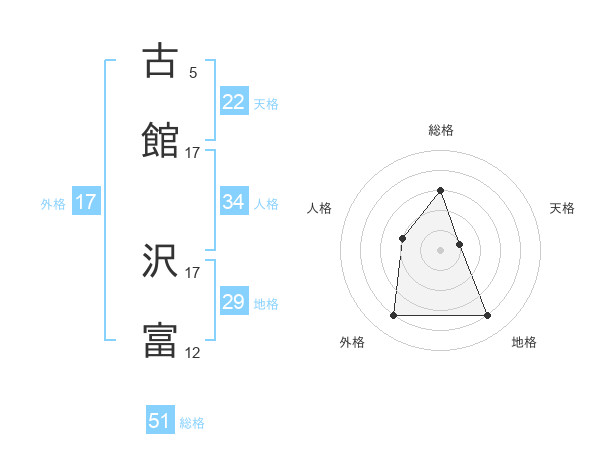 古館 沢富さんの総格は51画の3点!