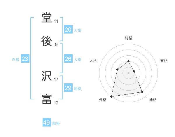 堂後 沢富さんの総格は49画の2点!