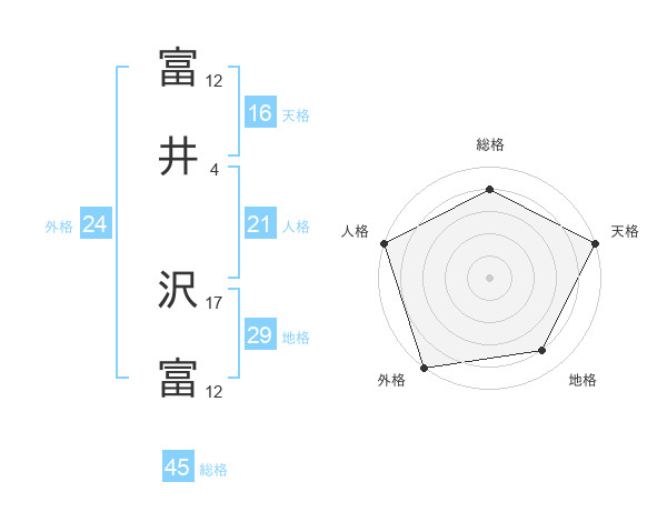 富井 沢富さんの総格は45画の4点!