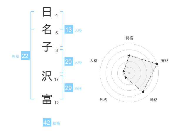 日名子 沢富さんの天格は13画の5点!
