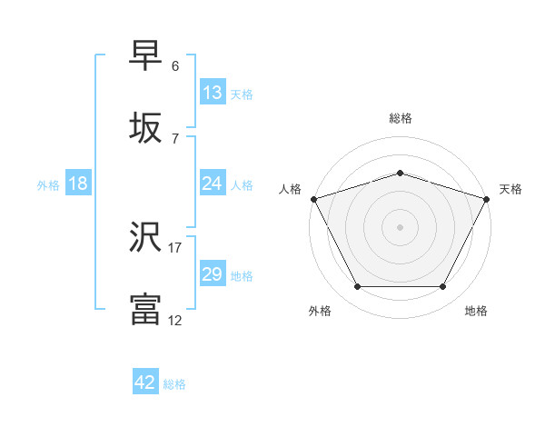 早坂 沢富さんを姓名の画数から五運を鑑定