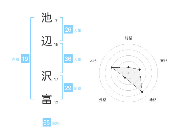 池辺 沢富さんの総格は55画の1点!