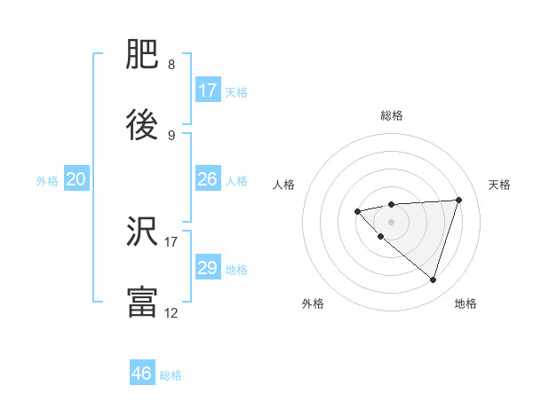 肥後 沢富さんを姓名の画数から五運を鑑定