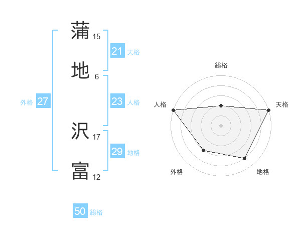 蒲地 沢富さんを姓名の画数から五運を鑑定