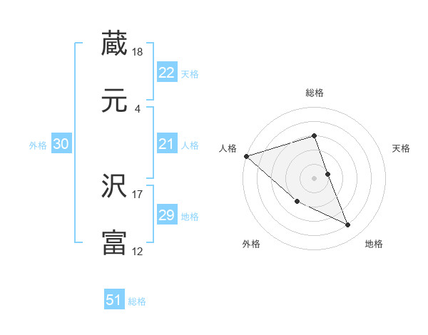 蔵元 沢富さんの総格は51画の3点!