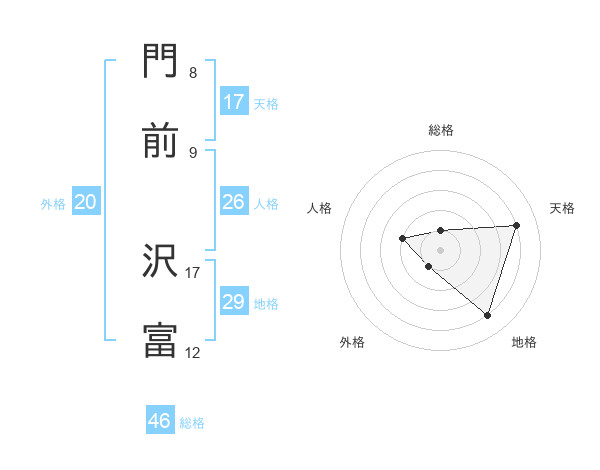 門前 沢富さんの総格は46画の1点!